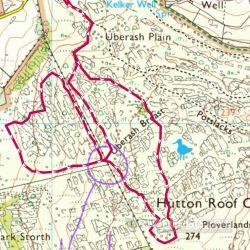Hutton Roof crags is a wonderful limestone pavement. This route gives the option for lots of variation (the western look can be extended to explore the boulder-strewn slope with many thickets). The route from the trig point to the stile over the wall is not all on path (if uncertain the a longer route retracing your steps to drop down to level of the still in the wall corner). Many opportunities for sunbathing on the west side of the wall, on warm, curvy limestone (in the right weather). Rare to meet anyone, met my only other naturist walker on this route as our paths crossed briefly.
